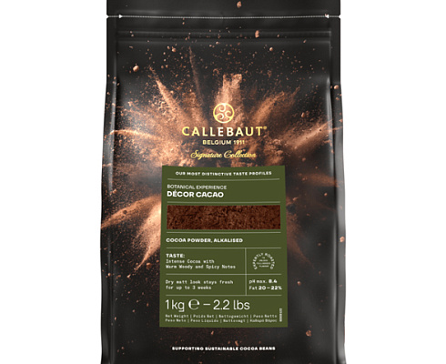 Décor cacao - жирный алкализованный порошок, изготовленный из чистых западноафриканских бобов высшего качества бархатистого красно-коричневого цвета с приятным вкусом шоколадного печенья , с нотками злаков и карамели.