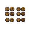 Форма украшения - круг диаметром 22 мм., темная глазурь с золотым орнаментом.
