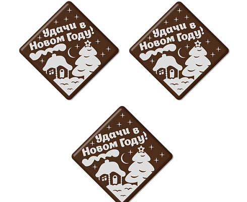 Декор с новогодними атрибутами - елка, заснеженный домик, звезды - и пожеланием "Удачи в Новом году!" обязательно станет изюминкой ваших кондитерских творений. Подойдет для украшения кондитерских