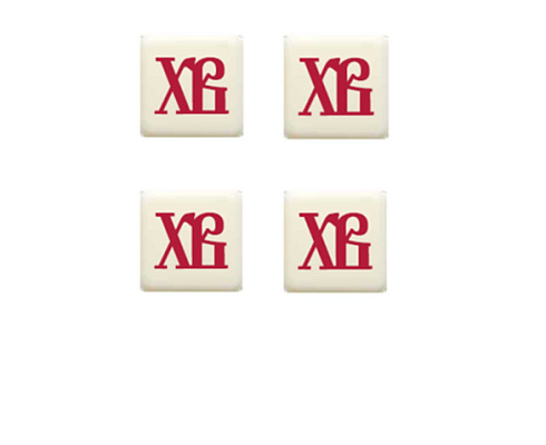 Форма украшения - квадрат со стороной 30 мм., белая глазурь с красным орнаментом.