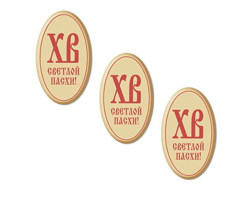 Овальные украшения из белой глазури с символическими буквами "ХВ" и пожеланием "Светлой Пасхи" - это праздничные съедобные символы, которые впишутся в любую выпечку, кондитерские изделия и десерты.