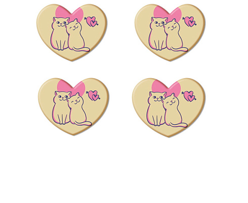 Романтичные сердечки из белой глазури с котиками в тематике Дня Святого Валентина и подобных праздничных мероприятий.