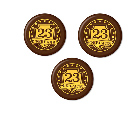 Идеально круглые, тонкие, с шоколадным вкусом медальоны "23 февраля". Украшение впишется в любую выпечку, кондитерские изделия и десерты праздничной тематики.