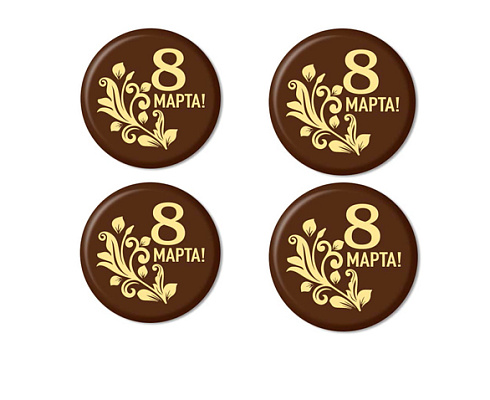 Идеально круглые, тонкие, с шоколадным вкусом медальоны с надписью "8 Марта". Украшение впишется в любую выпечку, кондитерские изделия и десерты праздничной тематики.