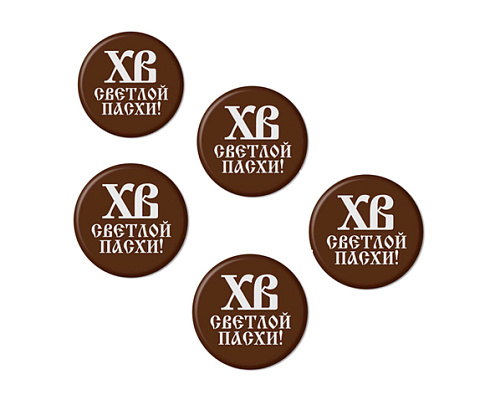 Идеально круглые, тонкие , с шоколадным вкусом медальоны с символическими буквами "ХВ" и пожеланием "Светлой Пасхи" - это праздничные съедобные символы, которые великолепно впишутся в любую выпечку, кондитерские изделия и десерты.
