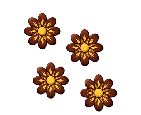 Изящные цветы из темной глазури с тонким желтым орнаментом станут отличным украшением для любых десертов , выпечки, мороженого и т.п.; мгновенно привлекают внимание, создают нежный образ.