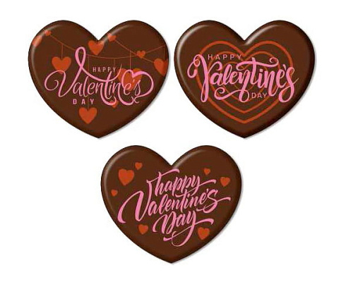 Нежные романтичные сердечки из темной глазури с надписями в тематике Дня Святого Валентина и подобных праздничных мероприятий.