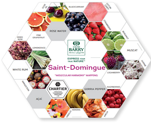 Вкус, рожденный мечтой - вкус темного кувертюра Санто-Доминго. Какао-деревья растут в тени цитрусовых, банановых и деревьев авокадо вдоль побережья Атлантики. Благодаря этому вкус получается слегка с кислинкой, с привкусом фруктового вина из желтых фруктов и ароматом цветочных специй - корицы и шафрана.