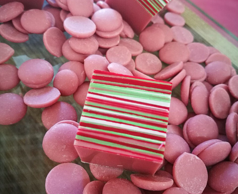 Рубиновый шоколад Ruby - самое необычное открытие в мире шоколада за последние 80 лет. Совершенно новый вкус и цвет, создан из какао-бобов сорта Ruby без добавления красителей или фруктовых ароматизаторов - фруктовые ноты, свежая кислинка и рубиновые оттенки.