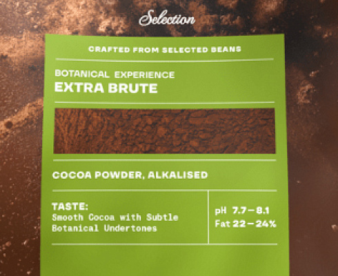 Какао-порошок Extra Brute имеет яркий, выразительный и интенсивный янтарно-красный цвет. Без содержания сахара, только чистый, четкий вкус, с горчинкой в акценте.